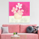 Flores de flores rosas en un jarrón con fondo rosa caliente y sombras pétales