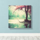 Esta pintura tranquila cuenta con un majestuoso árbol de cerezos floridos en el centro de un lago tranquilo. La tranquilidad del lugar no puede ser más que tranquilidad.