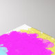 Escena de flores de acuarela pintada en salpicón. Las flores están pintadas de amarillo, azul, fucsia y gris. Los tallos verdes y la hierba con un cielo azul alrededor.