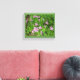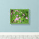 Flores silvestres de Oxalis de color rosa delgado y femenino en lona estirada
