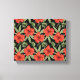 Lienzo Flores tropicales rojas patrón de hojas verdes sin