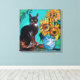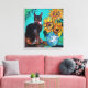 LIENZO FLUJOS CON GATO NEGRO EN TURQUÍA AZUL