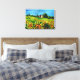Paisaje toscano, colorido, vibrante, expresiva belleza de la flora italiana de verano y campos en naranja amarillo brillante, verde, marrón, colores azules, hermosas flores, cipreses y olivos, antigua granja rústica bajo el cielo azul. Pintura acrílica sobre lienzo.