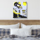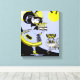 Chica con un abrigo azul, falda amarilla y zapatos tocando una flauta mientras un extraño mono baila bajo una luna llena. Dibujo del caricaturista italiano Antonio Rubino para la portada de la revista infantil "Il giornalino della Domenica", 1908.