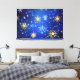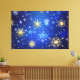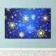 Lienzo Fondo azul XMAS con copos de nieve dorados
