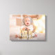 Este encantador lienzo estirado presenta la palabra BLESSED en un bello guión blanco y cualquier información que desee debajo en cualquier tipo de letra y color de fuente de su foto favorita.