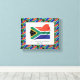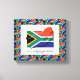 Esta es una imagen patriótica de tela de FLAG del SUR de ÁFRICA, que muestra la imagen principal del contorno del mapa combinado con la bandera de SUDÁFRICA. Debajo hay un verso de la Escritura de PERSONALIZABLE del Salmo 46:1, que dice que DIOS ES NUESTRO REFUGIO Y FUERZA. Tanto la imagen de la bandera principal como el versículo de las Escrituras son PERSONALIZABLES, así que puedes subir tu propia foto y cambiar el texto como quieras. En el fondo hay una versión más pequeña de la bandera en un patrón de baldosas. Esto sería un gran regalo patriótico para Navidades, cumpleaños o para cualquiera que ame esta nación.