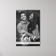 Personalice y personalizar este lienzo envuelto con su foto de compromiso (un filtro en blanco y negro se aplica automáticamente a su imagen). Úsalo como una hermosa señal para tu fiesta de compromiso y boda que será una hermosa exhibición para tu hogar. Con la palabra "amor" en un elegante estilo tipográfico, campos para los nombres de la novia y el novio, fecha de boda y ubicación. (suprímanlos si es necesario utilizando la herramienta adicional del personalizar).