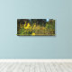 Decora tu hogar con esta alegre impresión en lienzo de jardín de flores silvestres amarillas. Esta impresión fue diseñada a partir de una fotografía original de girasoles creciendo en una pradera. Detrás hay un arroyo con una granja en el otro lado. Fotografía de Susan Golis