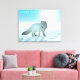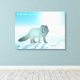 Blanco sobre blanco. Pintura digital de un Fox Ártico, Laguna Vulpes, en el hielo polar. El sol cuelga bajo en el brillante cielo ártico azul. No mire al sol porque puede dañar sus ojos. El texto que dice "Kalallit Nunaat", el nombre de la isla en Kalaallisut, el dialecto principal, aparece en azul y blanco resplandeciente. El Zorro Ártico se siente cómodo en un frío profundo; no empieza a temblar hasta que las temperaturas bajen a -70 °C (a 94 °F) debido a su piel densa y de capas múltiples. Otras adaptaciones a un clima gélido incluyen la piel en las plantas de sus pies, los oídos cortos y un ampollón corto. Los zorros del Ártico viven en las madrigueras, en una ventisca pueden adentrarse en la nieve para crear refugio. El abrigo del zorro ártico, a veces azul-gris, es un camuflaje invernal muy efectivo. Los tonos naturales permiten que el animal se funda en el medio ambiente. Durante la corta temporada cálida, su abrigo se transforma en marrón o gris, haciendo también de camuflaje en rocas de tundra y plantas. Durante el invierno, cuando las presas son escasas, los zorros siguen cazando osos polares en el paquete de hielo alimentándose con chatarra. Durante el verano se come roedores, pájaros, huevos e incluso pescado. También se abastecen de bayas y algas. Los zorros del Ártico tienen una audición extremadamente aguda, ayudados por sus anchas orejas frontales, que les permiten ubicar la posición precisa de su presa debajo de la nieve. Si oye algo moviéndose bajo la nieve, salta al aire y lanza un pozo, golpeando la nieve para atrapar a su presa. El rango de los zorros del Ártico es circunpolar; se pueden encontrar en todo el extremo norte. El único mamífero terrestre nativo de Islandia, llegó caminando sobre el hielo del mar al final de la última era del hielo.