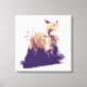 Hermoso diseño de temática natural con pinares de silueta de bosque de pinos, pinceladas con pájaros volando y un gran zorro naranja detrás.