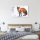 El lienzo ensanchado con vida silvestre, con una fotografía de un zorro rojo en la nieve y un solo hongo rojo. Una decoración de pared perfecta para los amantes de los animales.