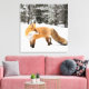 Pezo rojo con cola espesa en la fría nieve blanca. El bosque de pinos verdes de fondo. Bonita naturaleza.