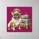 Unsere niedliche französische Bulldogge hat ihre Koffer gepackt und geht auf Reisen. Mit Krone und viel Schmuck hat sich der Hund hübsch gemacht.