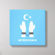 Esta obra de arte muestra manos encadenadas y la frase #FREEUYGHUR .