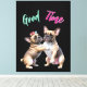 Niedliche französische Bulldoggen sind sehr verliebt. Valentinstag . Die Bully Dame hat bunten Haarschmuck und zieht alle Blicke an. Sehr schöne und lustige Illustration von zwei tollen Hunden. Der Bully springt an seinem Freund hoch und möchte bestimmt spielen.Ein tolles Geschenk für jeden Tierliebhaber. Bulldoggen lieben das Abenteuerliche und genießen die Zeit mit Mensch und Tier.