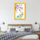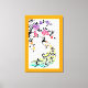 Lienzo Frontera naranja de pavos reales y flores de cerez