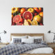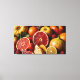 Un conjunto vibrante de frutas variadas incluye pomelo en rodajas y limón, y sus interiores jugosos. El surtido de frutas, con naranjas, granadas y fresas, se completa con algunas hojas verdes.