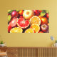Un conjunto vibrante de frutas variadas incluye pomelo en rodajas y limón, y sus interiores jugosos. El surtido de frutas, con naranjas, granadas y fresas, se completa con algunas hojas verdes.