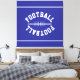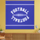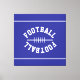 This sporty design features white mirrored athletic white FOOTBALL text in the shape of a football, centered against deep blue background with sleek top and bottom edge stripes. The colors in this design can be personalized.