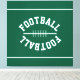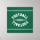This sporty design features white mirrored athletic white FOOTBALL text in the shape of a football, centered against deep forest green background with sleek top and bottom edge stripes. The colors in this design can be personalized.
