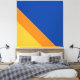 Este diseño colorido presenta rayas diagonales sin soldadura de color azul profundo, naranja brillante cálido y amarillo dorado.