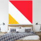 Este colorido y deportivo diseño presenta amplias rayas diagonales rojas brillantes, doradas y blancas sin costura.