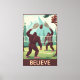 Funny Bigfoot believe canvas print for all those out there searching in the wilderness for the elusive Bigfoot. If you believe in Bigfoot, these surreal posters in the style of the iconic WPA art posters of the 1930s are the funny Bigfoot canvas prints for your wall.