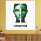 This striking design features a half-human, half-digital face formed from flowing binary code, symbolizing the future where identity, intelligence, and code become one. Bold, modern, and thought-provoking, it captures the essence of AI, cyber culture, and the digital evolution shaping tomorrow.