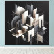 A highly detailed abstract composition inspired by architectural forms and futuristic spatial design. Layered geometric structures, muted tones, and precise linear elements create depth, rhythm, and a sculptural presence. This artwork brings a sophisticated, contemporary atmosphere to modern interiors, making it ideal for large wall spaces, offices, studios, and gallery‑style environments.