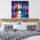 Experience the mesmerizing fusion of city and sky with this futuristic urban skyline canvas print. Vibrant gradients of deep blues, pinks, and warm yellows create a magical, almost dreamlike atmosphere, while the reflective water adds depth and symmetry. Simplified, stylized skyscrapers and soft cosmic highlights make this artwork a striking centerpiece for any modern space. Perfect for city lovers, art enthusiasts, and anyone drawn to dynamic, colorful urban landscapes.