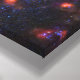 Galaxia espiral NGC 3351. El gas molecular denso se muestra en magenta. Estrellas masivas jóvenes iluminan sus alrededores en rojo. Los carriles de polvo se resaltan en estrellas blancas y recién formadas en azul.
