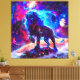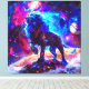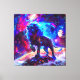 Un majestuoso león con una brillante forma azul, parado orgullosamente en el fondo de la galaxia, irradiando poder y elegancia cósmica.