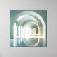 Ein ruhiger architektonischer Raum, geprägt von weichem Licht, klaren Rundbögen und stiller Symmetrie. Hohe Öffnungen lassen diffuses Tageslicht einfallen und erzeugen langgezogene Reflexionen, die den Blick durch die Galerie führen. Die gedämpfte Farbigkeit und die präzise Geometrie verleihen dem Motiv eine kontemplative, klare Präsenz — perfekt für Räume, die Minimalismus und eine feine architektonische Atmosphäre schätzen.