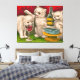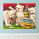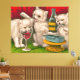 Lienzo Gatitos bebiendo y comiendo pescado de sardina