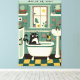 Gato en el cuadro del baño inspirado en el estilo de arte Maud Lewis