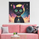 Lienzo Gato negro futurista atómico en luz de la luna