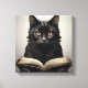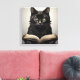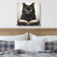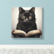 Este arte de lienzo tiene un ilustracion de un gato negro leyendo un libro vintage. Perfecto para cualquier amante del gato o lector ávido.