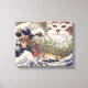 Collajes únicos de famosos ukiyoe, o impresiones japonesas en bloques de madera, la Gran Ola de Kanagawa de Katsushika Hokusai (1760-1849) y el Gato sobrenatural de Kawanabe Kyosai (1831-1889).