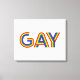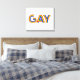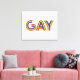 Esta obra de arte muestra la palabra Gay en una fuente de color arcoiris.