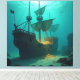 Ein legendäres Piratenschiff ruht tief auf dem Meeresgrund – seine gewaltigen Masten ragen still in das blaue Wasser, während Goldmünzen und Schatzkisten den Boden bedecken. Ein mystisches Leuchten dringt aus dem Inneren und erzählt von Abenteuern, Plünderungen und einem verlorenen Schatz, den seit Jahrhunderten niemand mehr geborgen hat.
