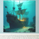 Ein legendäres Piratenschiff ruht tief auf dem Meeresgrund – seine gewaltigen Masten ragen still in das blaue Wasser, während Goldmünzen und Schatzkisten den Boden bedecken. Ein mystisches Leuchten dringt aus dem Inneren und erzählt von Abenteuern, Plünderungen und einem verlorenen Schatz, den seit Jahrhunderten niemand mehr geborgen hat.