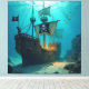 Ein legendäres Piratenschiff ruht tief auf dem Meeresgrund – seine gewaltigen Masten ragen still in das blaue Wasser, während Goldmünzen und Schatzkisten den Boden bedecken. Ein mystisches Leuchten dringt aus dem Inneren und erzählt von Abenteuern, Plünderungen und einem verlorenen Schatz, den seit Jahrhunderten niemand mehr geborgen hat.
