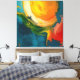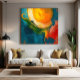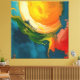 Un sol ardiente irrumpe a través de olas de color y energía, como si el mundo estuviera naciendo en pinceladas vibrantes. El movimiento de formas evoca viento, mar y fuego en una danza cósmica de luz y creación.