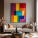 Una explosión de colores primarios en un patrón geométrico complejo. Formas puras se entrelazan, creando una composición dinámica y estimulante que celebra la belleza del orden y el caos.