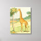 La jirafa africana, de cuello largo, mastica las hojas del árbol de acacia en la sabana del desierto. Dibujo de un libro infantil ilustrado por Benjamin Rabier. ✪ probar nuestras otras tiendas en Zazzle: