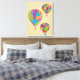 Añade un poco de estilo a la pared con esta impresión de tela, con ilustraciones pintados de globos de aire caliente en colores arcoiris brillantes contra una arena suave o un fondo de color marrón claro.