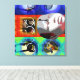 Projet conceptuel utilisant les outils créatifs de Zazzle. Ce projet part de l'idée de proposer aux amateurs d'Art un travail participante. Pour cela, je offer un cadre (et même plusieurs cadres superposés et légèrement transparents) pour créer une integration only et original. Ces cadres sont au nombre de 24 pour les 24 heures de la journée humaine. Ces cadres sont de formes géométriques: cercle, carré et octogone. Les cercles se déclinent en dégradé dans les tons de bleu, les carrés dans les tons orangés et les octogones en vert, en bleu et émeraude. Le choix des couleurs et des formes s'accort 3 type de "time" constituant un jour: soit 8heures de sommeil, 8 heures de travail et 8 heures de détente, les repas sont comptés dans ce time détente A cela s'ajoute 7 "Objets" (à la fois des objets que j'ai posséou qui taient chez moi, que j'ai pris en photo et quelquefois des morceaux de mes propres travaux: ici il s'agit d'un série de livres miniaturas. L'image de la poupée est une oeuvre en céramique qu'une amie artiste australienne m'a donnée. Chaque élément (cadre coloré et objets) sont modificen taille, ils peuvent être changés de place. Ainsi sobre el modificador peut l'ordre des superpositions de couleur. Avec 31 calques les posibilités deviennent énormes. Ce premier panneau est un panneau test, qui me permettra d'affiner et de modifier mes images. L'idée de départ étant plus complexe et faisant intervenir les fuseaux horaires du lieu des amateurs d'Art potenciels, je n'ai conservé que les cadres. — Lienzo cuadrado 24"x24" - Disponible en otro tamaño con la composición completa. No olvides toda la serie con varias imágenes y varios marcos de colores gradientes.