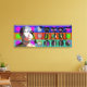 Projet conceptuel utilisant les outils créatifs de Zazzle. Ce projet part de l'idée de proposer aux amateurs d'Art un travail participante. Pour cela, je offer un cadre (et même plusieurs cadres superposés et légèrement transparents) pour créer une integration only et original. Ces cadres sont au nombre de 24 pour les 24 heures de la journée humaine. Ces cadres sont de formes géométriques: cercle, carré et octogone. Les cercles se déclinent en dégradé dans les tons de bleu et de pourpre, les carrés dans les tons orangés rouges et les octogones passent du vert au violet.Le choix des couleurs et des formes s'accordent en 3 type de "time" constituant un jour: soit 8heures de sommeil, 8 heures de travail et 8 heures de "détente", les repas sont comptés dans ce time détente A cela s'ajoute 7 "Objets" (a la fois des objets que j'ai possédé ou qui étaient chez moi, que j'ai pris en photo et quelquefois des morceaux de mes propres travaux: il s'agit d'un série de livici las miniaturas. L'image de la poupée est une oeuvre en céramique qu'une amie artiste australienne m'a donnée. Chaque élément (cadre coloré et objets) sont modificen taille, ils peuvent être changés de place. Ainsi sobre el modificador peut l'ordre des superpositions de couleur. Avec 31 calques les posibilités deviennent énormes. Ce premier panneau est un panneau test, qui me permettra d'affiner et de modifier mes images. L'idée de départ étant plus complexe et faisant intervenir les fuseaux horaires du lieu des amateurs d'Art potenciels, je n'ai conservé que les cadres. — Lienzo 32"x12" - Disponible en poster.