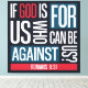 Bold typographic design featuring Romans 8:31 — "If God is for us, who can be against us?" — printed in striking red, white, and blue on black for high-contrast impact. Perfect for faith-driven apparel, gifts, and wall art that inspires confidence and reassurance